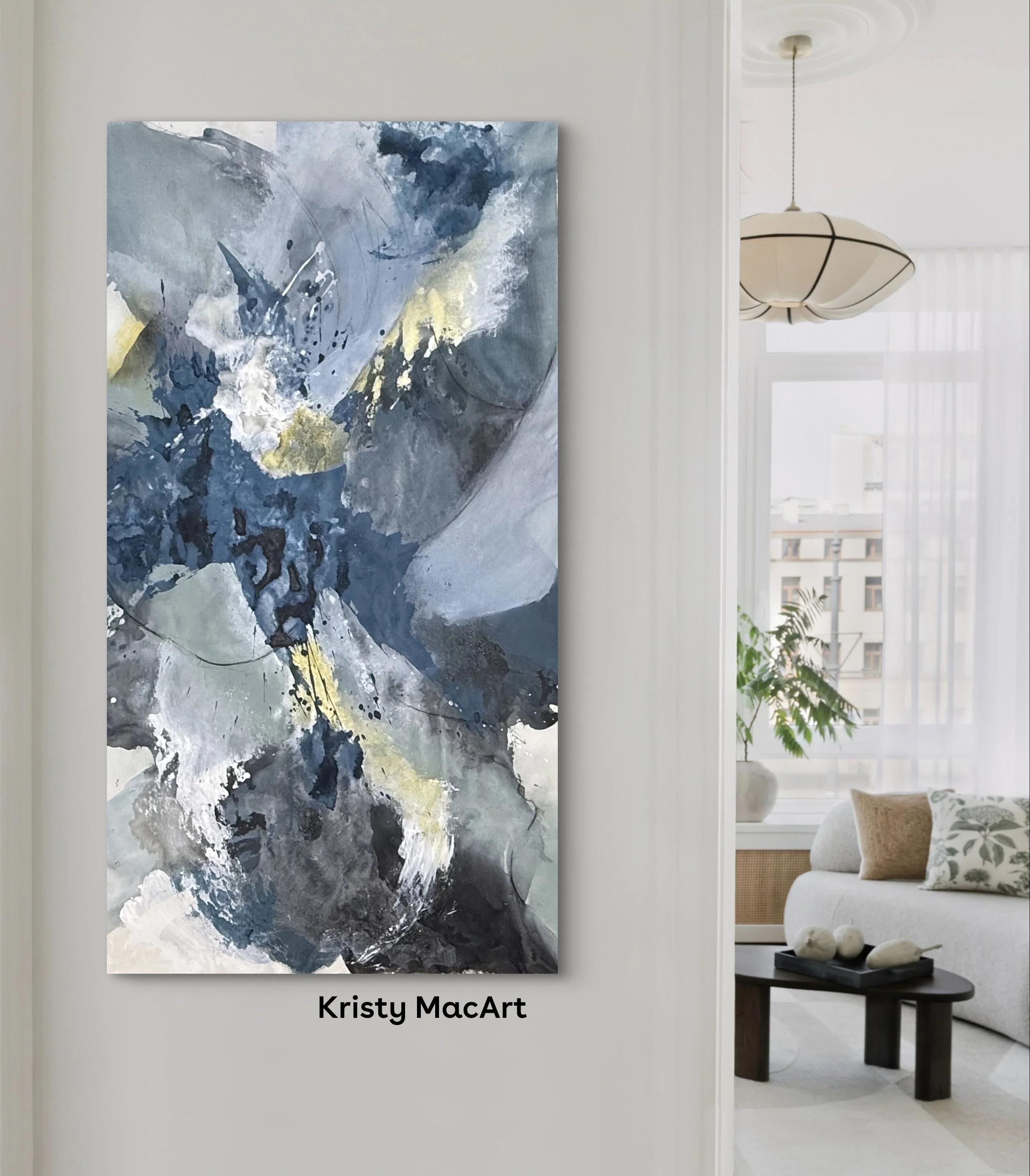I didn’t plan this painting—I felt it. The storm came first, not just outside, but within me. It brought a weight I couldn’t put into words, so I let the canvas hold it. The deep blues, the heavy greys—each stroke was a reflection of what I couldn’t say out loud. And then, slowly, light found its way in. A gentle yellow, a softened glow. Not bright, not bold—but present. Persistent.